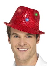 Pailletten Hoed met LED Verlichting, Rood